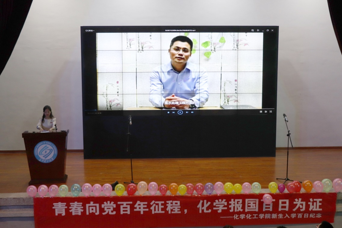 纪念仪式上,师生共同观看了入学百日纪念视频,回顾了一百天以来的点点滴滴:从军训到第一次班会,从实验到专业课,从班聚到长绳比赛……同学们眼里泛着感动,心中满是感慨。“看到走过的大学百日足迹,很感动!”化工2106班的王欣雨说到。