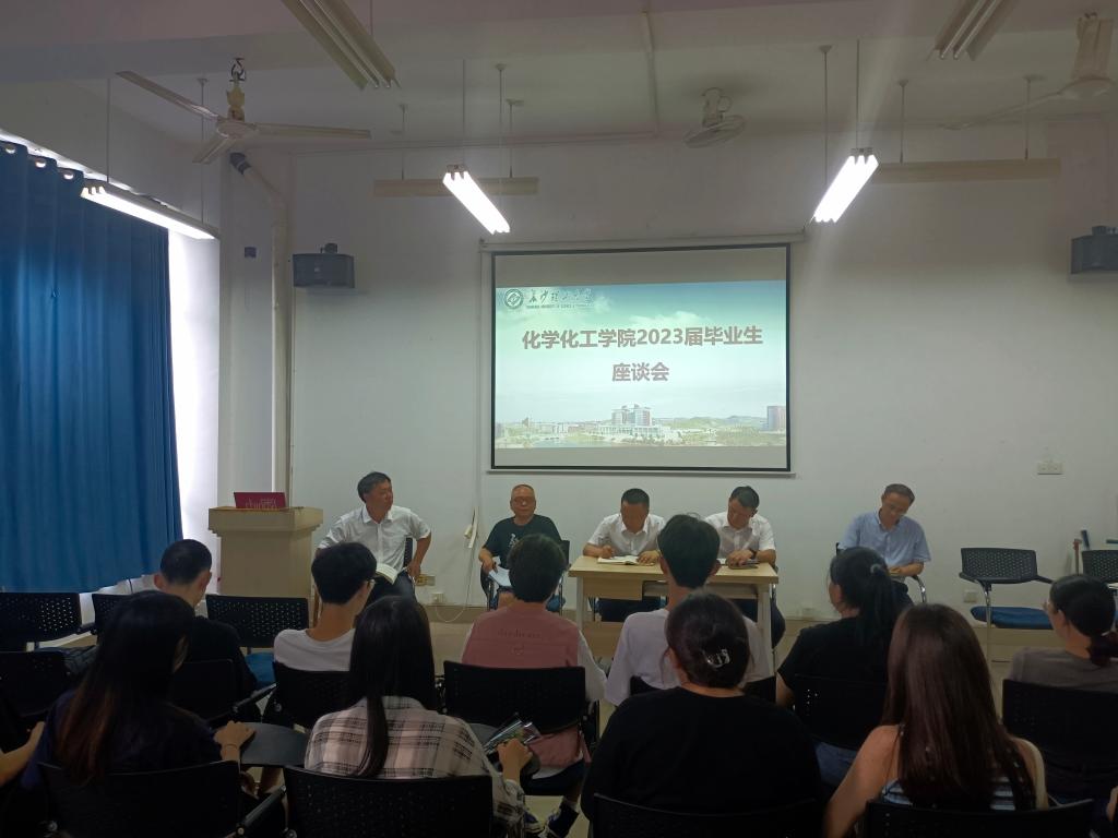 6月16日下午,化学化工学院于工三B210召开2023届毕业生座谈会,学院党委书记宋刘斌、副院长(主持工作)张跃飞、副书记任艮丰、副院长陈启杰、学院关工委常务副主任邓豫、毕业生代表参加本次会议。