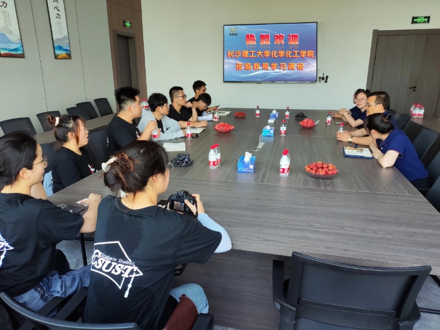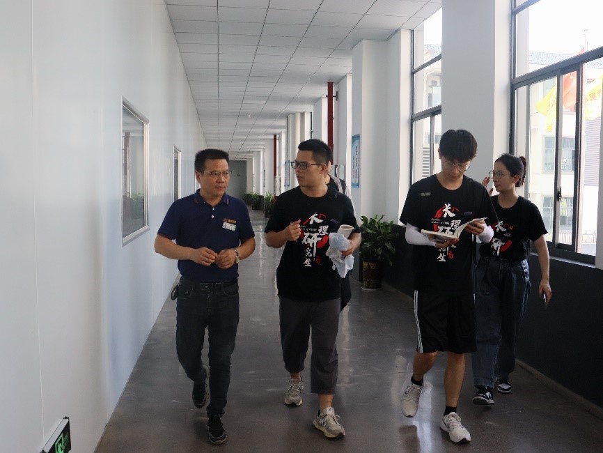 制造部经理兼工会主席刘光春带领实践团成员先后参观了标准化样品间、金属化车间、流延车间等,了解企业产品生产工艺流程、材料性质、环保回收工艺等情况。刘经理热情地同实践团成员介绍,鑫星集团在发展过程中注重产品创新的同时兼顾企业人文关怀,只为老董事长常提及“不做百强企业,只做百年企业”的嘱咐。实践团成员周宇阳感受深切的说;“本次交流我们感受到企业十分宝贵生产经验,为我们这些从“象牙塔”走出的研究生们上了一堂生动的实践课。”随后,实践团成员同厂区骨干进一步探讨生产技术、资源回收难题,为下一步校企合作、互助共赢、共同发展打下良好基础。