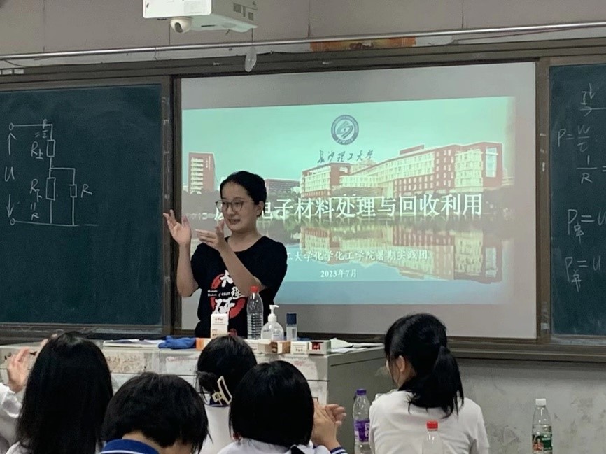 (通讯员 江洁 向优涛 刘程亮)7月6日,长沙理工大学研究生暑期实践团以三线纵深的方式在新化县各企业、社区、中学开展“一区、一课、一实践”暑期调研活动。通过“以学促行、以行促践、以践促讲”三个维度走访社区,参观企业,深入校园宣传科普废旧电子材料的资源浪费以及对环境产生的危害,提高大众环保意识、低碳意识。