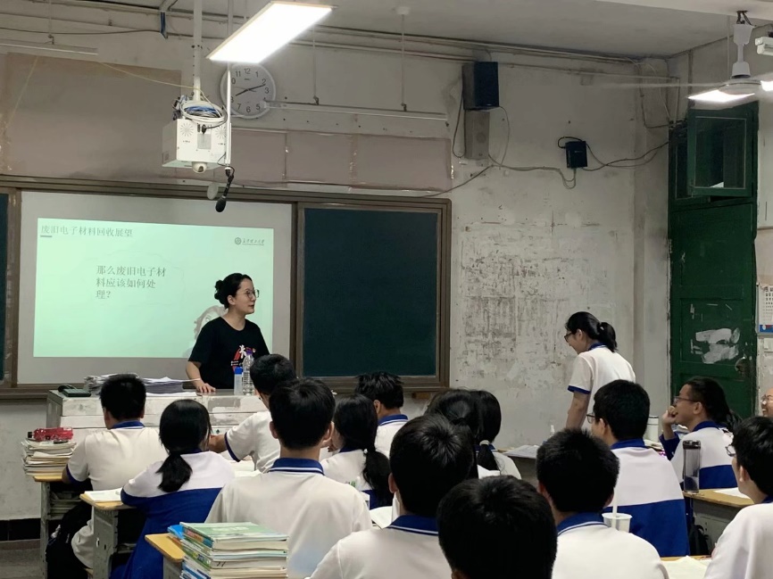 实践团前往新化一中进行宣讲,深入浅出讲解新能源领域前沿内容,积极引导学生了解日常生活中电子垃圾的严重危害。学生反响热烈,主动与实践团队展开密切交流与互动,实践团宋晓轩在宣讲结束之后表示:“此次实践团“入课堂”是为了增强青少年的环保责任意识,并帮助学生们认识到电子垃圾分类、回收和利用的重要性,作为研究生我们要用脚步丈量祖国土地,用眼睛发现中国精神,用耳朵倾听人民呼声,用心感应时代脉搏。”