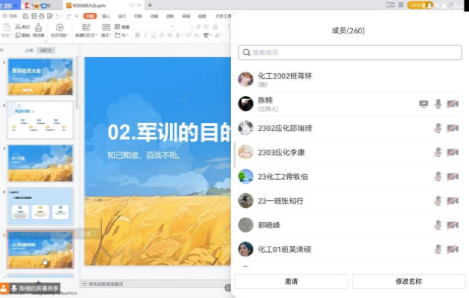 9月20日下午,化学化工学院举行2023级本科新生军训动员大会,会议采用线上腾讯会议的形式进行,由2023级本科生辅导员陈楠主讲,200多名2023级本科新生在线上参会。
