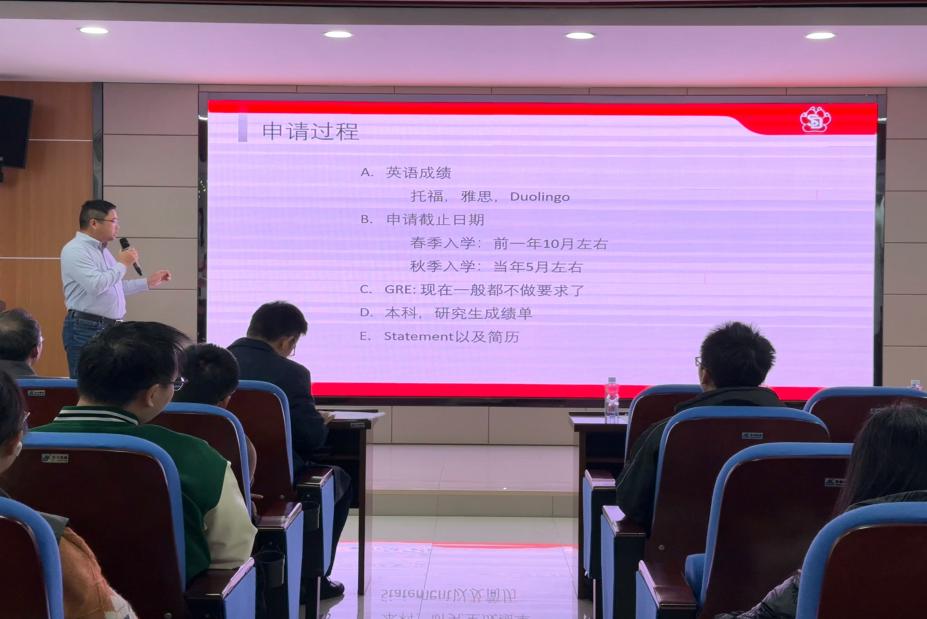 伍旭首先向同学们详细介绍了出国读研读博的申请流程,为同学们详细解答常见的留学过程中常见的问题和担忧,鼓励同学们积极申请出国留学深造。随后,他以多功能纳米材料的肿瘤选择性治疗为例,介绍了一体化功能的肿瘤靶向的生物纳米材料。
