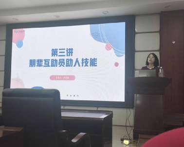 为健全学生心理健康教育长效机制,切实发挥朋辈互助在心理育人工作中的重要纽带作用,5月28日晚19:00,化学与医药工程学院心理成长部和幸福舍于在工三A320开展第三期朋辈培训。本次活动特邀校心理健康教育中心卢灵舢担任主讲,2024级全体寝室长、班级心理委员及心理成长部、幸福舍成员、研究生团队负责人等87名朋辈骨干参与系统学习。