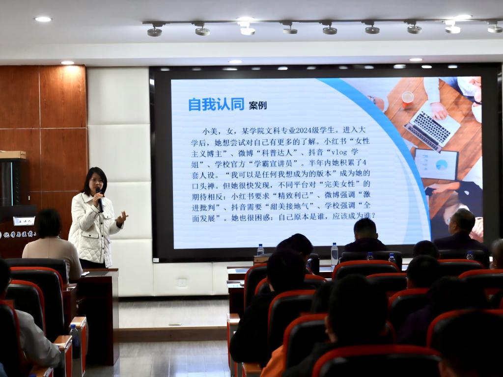 主讲人易敏以 “读懂‘Z 世代’青年,做学生心理健康成长的守护者 —— 心理画像、问题识别与干预指南” 为主题,结合高校学生心理健康工作中的典型案例,层层深入剖析 “Z 世代” 青年的心理画像。她从情绪调节、人际交往、学业压力、生涯规划等学生高频困扰维度,系统讲解了常见心理问题的早期识别信号,并针对性给出了共情沟通、分级干预、资源联动等实用策略。易敏指出,“Z 世代” 青年成长于数字化浪潮中,思维多元且情感需求细腻,教师需打破传统沟通模式,以更有温度、更接地气的方式走进学生内心,成为他们可信赖的 “心理守护者”。