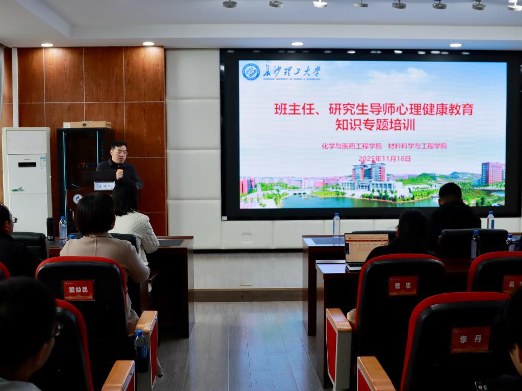 为切实提升班主任、研究生导师的心理健康教育专业能力,为 “Z 世代” 学生筑牢心理成长防线,11 月 18 日,长沙理工大学化学与医药工程学院联合材料科学与工程学院,在工科三号楼 B319 教室共同举办心理健康教育专题培训。本次培训由化学与医药工程学院党委副书记李家春主持,大学生心理健康教育中心易敏老师担任主讲,两学院全体班主任、研究生导师齐聚现场参与学习。