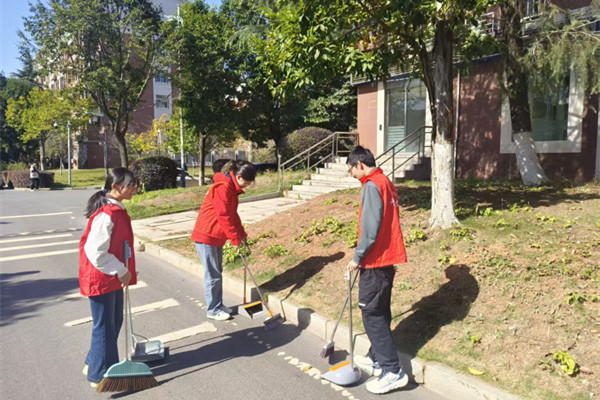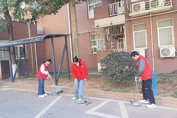 践行劳动教育,共建美丽家园:化学与医药工程学院志愿者开展宿舍楼栋外围卫生清扫活动