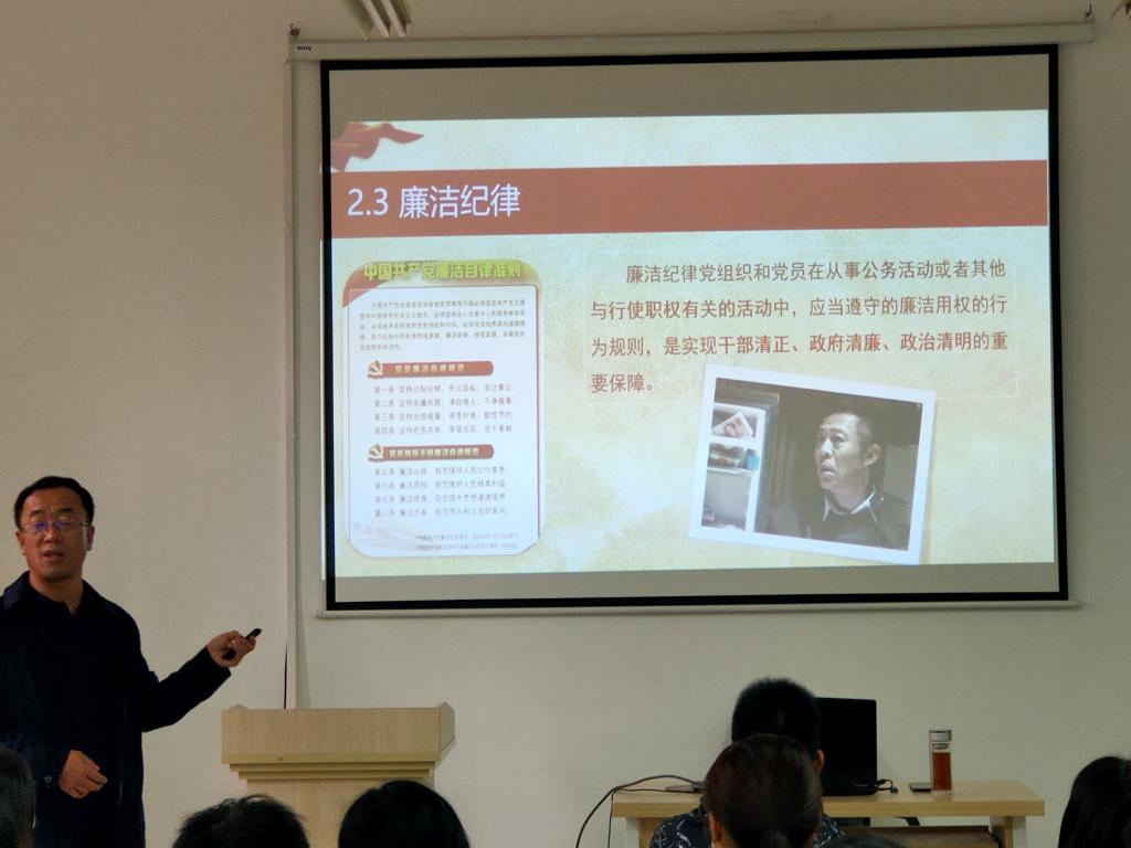本次课程由长沙理工大学后勤保障中心党委书记王明彦副教授进行讲授,主题为党的纪律和作风。党的纪律和作风是党形象的体现,是党的性质、宗旨、纲领、路线的主要表现,是党的创造力、战斗力和凝聚力的重点方面。