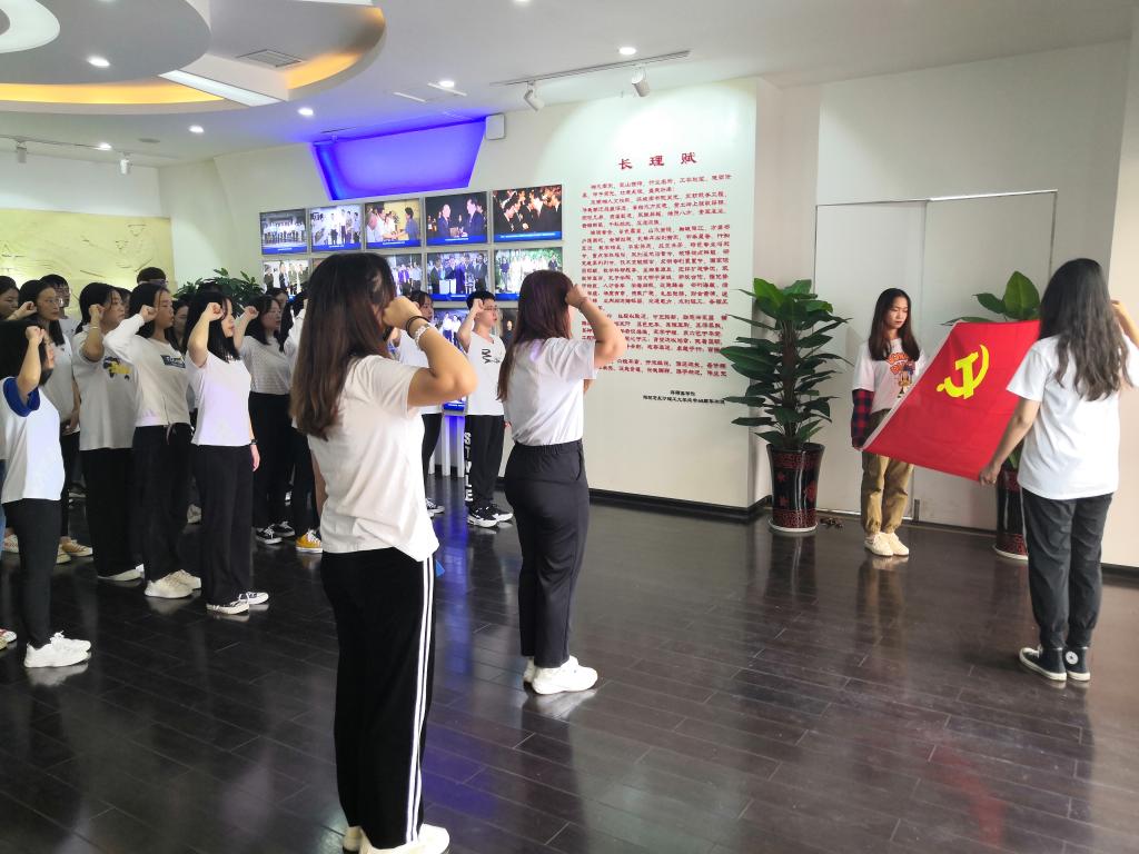 9月19日中午,长沙理工大学化学与食品工程学院组织44名新发展党员同志在校史馆开展入党宣誓活动。党建辅导员刘文成、学生党总委员及全体新发展党员同志参与本次活动,生物支部商艳同志担任主持人。