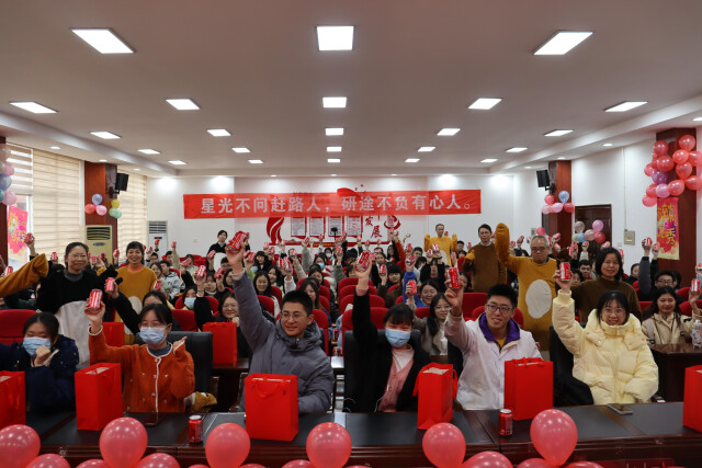 随后老师们为同学们亲手分发学院精心准备的考研助力大礼包,礼包内有印着学生专属姓名、“考研上岸”等字样的袜子、胸徽、可乐,也有辣条、薯片、糖果等零食。每件礼物都寄托着老师们的祝福与期望,希望同学们在即将到来的研究生考试中都能够“胸有成竹,熠熠生辉”,考出让人“袜噻”的成绩,拼搏的模样“薯”他们最强,考研成绩可喜“可乐”。化学化工学院副院长张跃飞对学院的活动作出了进一步的诠释“今天的活动和小礼品的选购都体现了学院以学生为中心的宗旨,希望同学们在考研路上坚定信心,取得优异的成绩!”