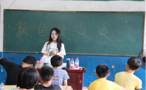 7月11日,长沙理工大学化学化工学院暑期三下乡社会实践团队“乡村留守儿童启蒙使者”在湖南省邵阳市新宁县坪山村开展了第二次课堂教学和实地调研。针对当地的留守儿童在教育方面存在教学内容相对单一的问题,为了引导学生对化学知识产生兴趣,增强对化学的求知欲,该团队于当日上午在坪山小学开展了“化学趣味小实验”这一课程。