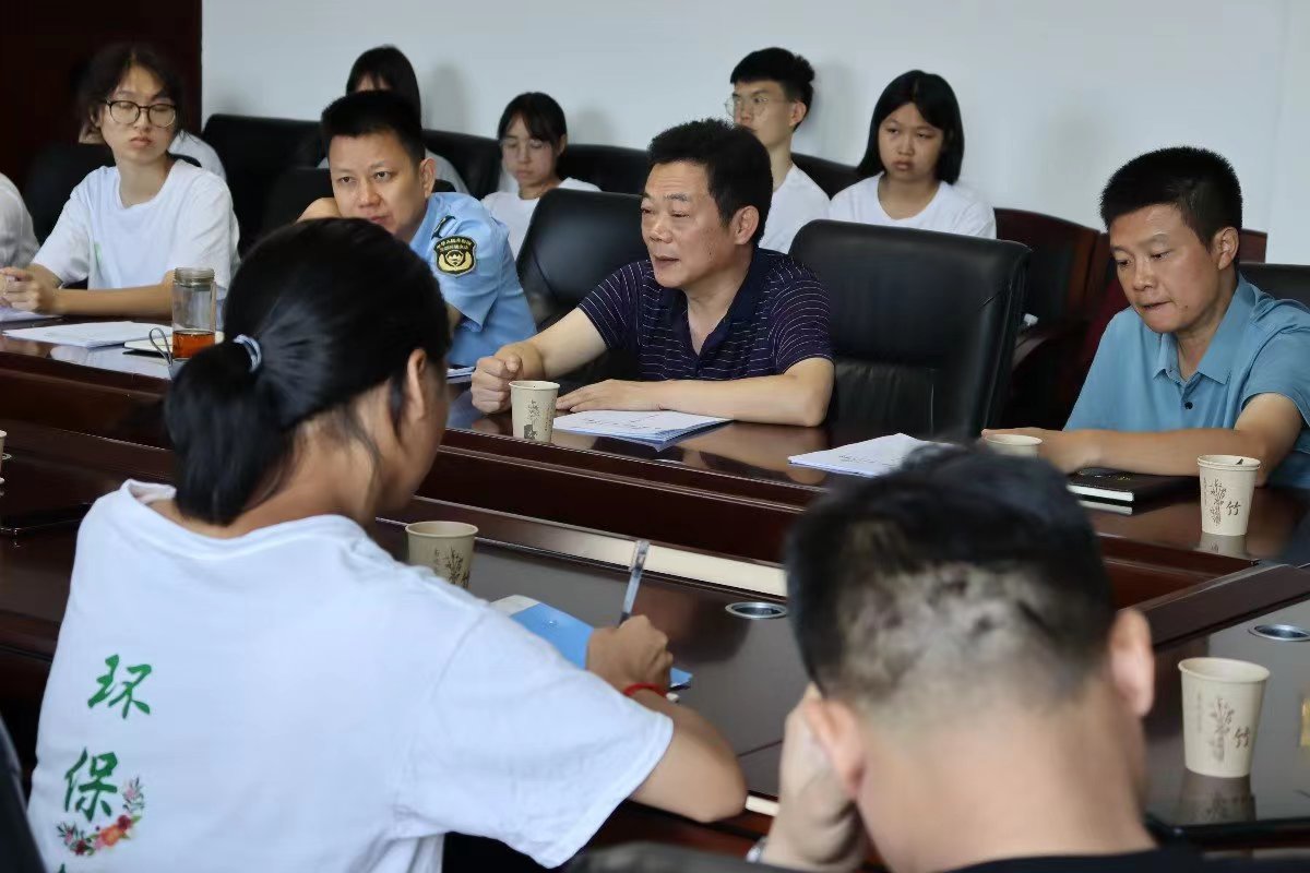 7月15日,长沙理工大学化学化工学院环保志愿者协会组建的湿地使者三下乡行动队抵达岳阳市生态环境局湘阴分局展开座谈,生态环境局湘阴分局副局长唐世才,总工程师胡晓红,执法大队大队长钟权辉,监测站站长沈建伟,湘阴县城管执法局副局长高胜强,湘阴县生态环保志愿者协会执行会长黎勇出席会议。