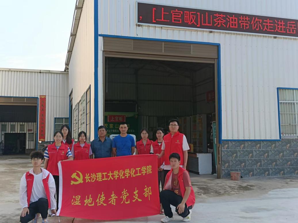2023年7月5日,长沙理工大学湿地使者三下乡团队赶上早班公交车来到了岳阳市云溪区路口镇北部的黄皋村,去感受其成功的产业振兴模式——山上“金果果”,山下“金叶叶”。近年来黄皋村积极发展艾草和油茶的产业种植,成立了云溪区黄皋艾叶种植专业合作社,盘龙山油茶种植专业合作社等4个合作社。湿地使者团队在此处展开了产业调研。