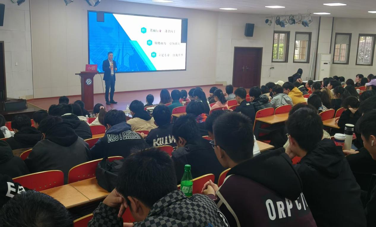 在讲座过程中,刘茂林结合自身的成长历程,讲述了如何从一名普通的化工技术人员发展到企业管理者的心路历程,并分享了选择职业道路时的思考方式。他强调,职场不仅是知识和能力的比拼,更是心理素质、应变能力和沟通能力的考验。通过具体案例,刘茂林分析了如何在遇到职业瓶颈时进行自我突破,并提供了在职场中如何与团队合作、解决冲突以及提高工作效率的实用建议。讲座结束后,进入了互动环节。学生们踊跃提问,纷纷向刘茂林请教关于职业规划、职场发展以及如何提高自身综合素质等方面的问题。刘茂林一一作答,耐心地为学生们提供了具体的建议和指导。