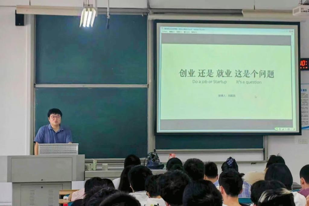 近日,为助力2023级应用化学专业本科生精准规划职业发展方向,更好把握创业与就业的选择路径,长沙理工大学化学与医药工程学院应用化学系特邀长沙启迪科技孵化器有限公司投资总监、衡阳启迪科技孵化器有限公司商务拓展总监刘振西先生,举办了主题为“创业还是就业”的专项创业就业指导讲座。