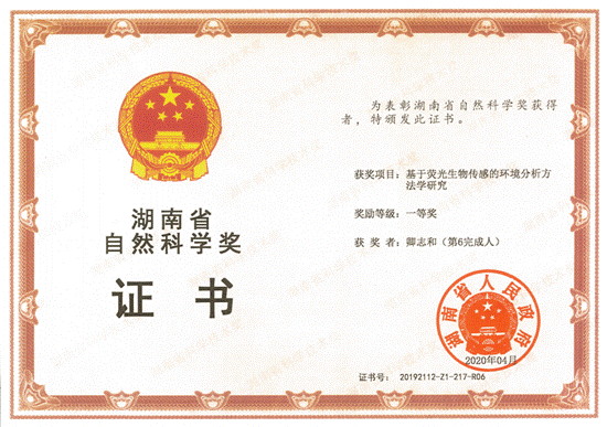 获奖等级:湖南省化学化工学会第十八届青年化学化工奖