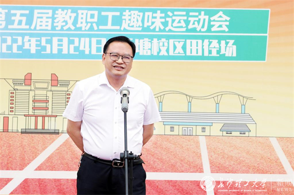 5月24日,“喜迎二十大 奋进新征程”长沙理工大学第五届教职工趣味运动会在云塘校区田径场隆重举行。副校长、校工会主席蒋璟萍,副校长刘朝晖出席运动会开幕式。开幕式由校工会常务副主席郭剑主持。