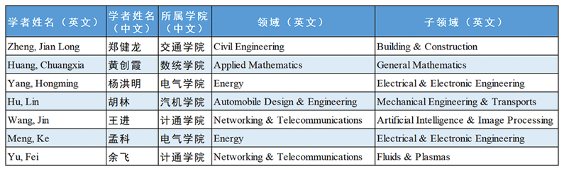 雷竞技官网7位学者入选全球前2%顶尖科学家