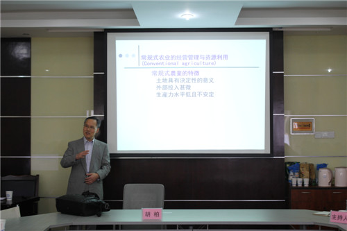 胡教授报告的主题是《现代农业经济学及其先端研究》。他首先从农业经济由传统经营管理到现代经营管理的转变展开讲述,以舒尔茨的名言作为切入点,介绍了常规式农业的经营管理与资源利用的特征等,阐述了环境问题和经营管理的关系,追求经济效率和环保效率并不矛盾,从长远效益来看环境效果与经济效率成正向关系的;然后胡教授又向师生们介绍了当今世界农业经济学领域的前沿研究课题,鼓励对这些课题感兴趣的同学们大胆尝试,并引导师生们运用经营管理分析技术进行科学研究。