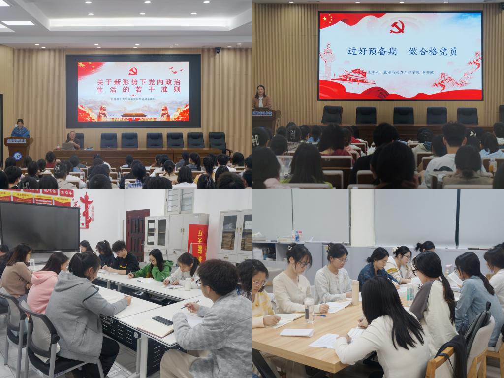 理论课上,邓豫和罗亦欧分别以《关于新形势下党内政治生活的若干准则》《预备党员如何度过预备期》为主题授课,他们强调预备党员在预备期间要端正态度,严格要求自己,严肃认真地开展党内政治生活,坚定自觉地同党中央在思想上政治上行动上保持高度一致,做一个“政治明白人”。讨论课上,预备党员们围绕党员如何坚定理想信念和践行初心使命、怎样加强自身政治意识并遵守政治纪律等四个主题,结合自身实际轮流进行发言,展现出了良好的精神面貌和先进的思想觉悟。