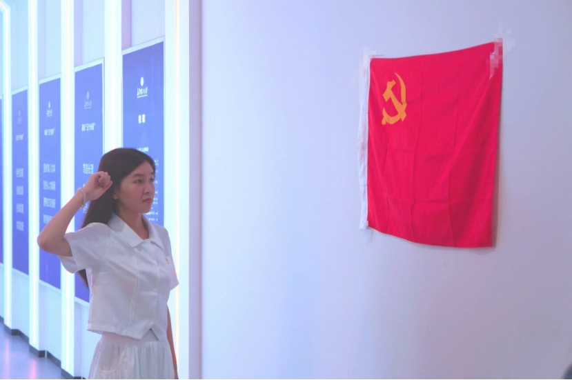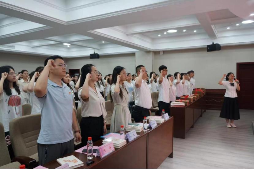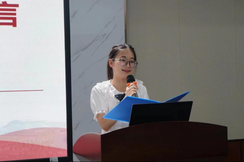 毕业生党员代表会计2003班陈思雅发言,回顾了大学四年不断向党组织靠拢的过程以及所得所悟谢母校与老师的培养使其实现成长的蜕变与思想的升华。除此之外,她还号召所有毕业生党员谨记教诲,时刻严格要求自己,不忘初心、牢记使命。随后,全体毕业生党员面向党旗重温入党誓词