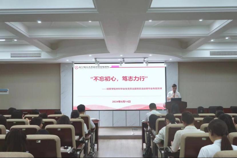 614日下午,经管学院2024届毕业生党员主题党日活动暨毕业专题党课在云塘校区文科楼D207顺利展开。经管学院党委副书记汪功伟、学工办主任周路路、党建辅导员叶鑫、团委书记何涛以及全体毕业生党员参与此次活动。活动由党建辅导员吴畏主持。
