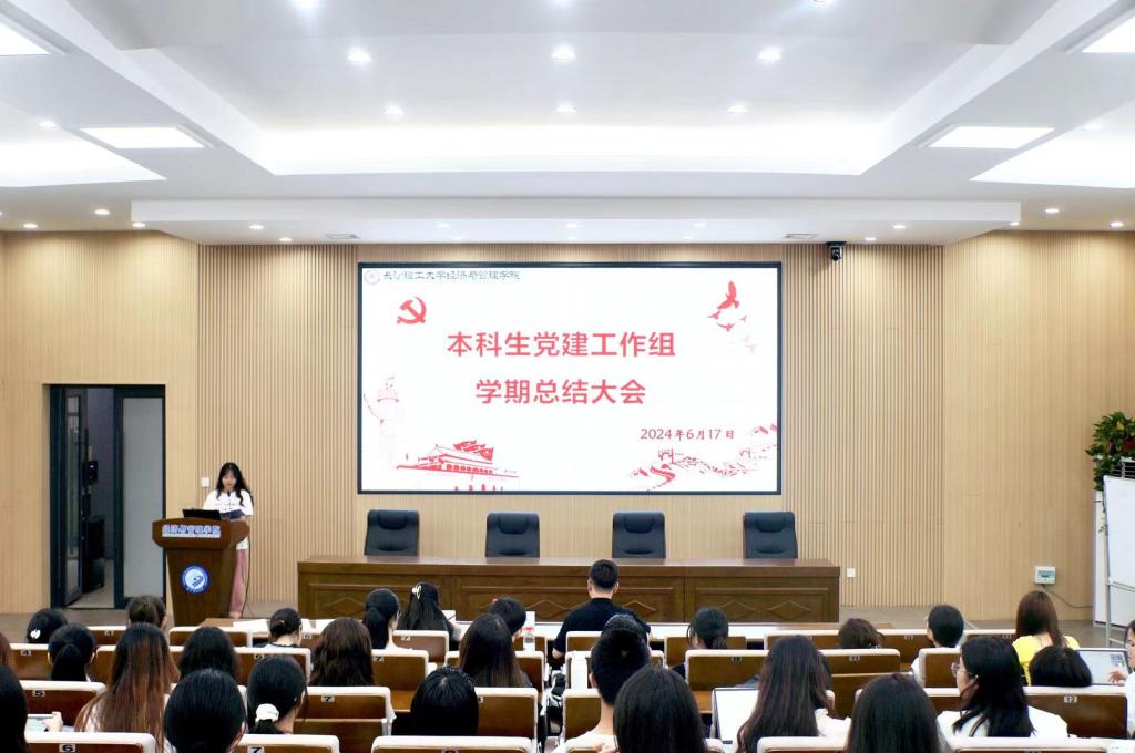 6月17日晚,经管学院本科生党建工作组在金盆岭校区经管大楼100报告厅召开学期末工作总结大会,学院党委副书记汪功伟、党建辅导员叶鑫、吴畏及工作组全体学生干部参加会议。会议由党建工作组组长李佳璇主持。