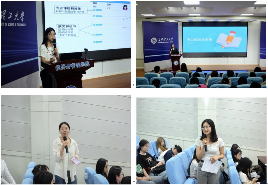 姚雁琼和张霞(分别保研至中央财经大学和湖南大学)两位同学结合各自的经历体会,从大学三年日常学习时间安排、学科竞赛参与、推免申请材料准备等方面对保研经验进行了总结分享,为学弟学妹们指明了努力方向。