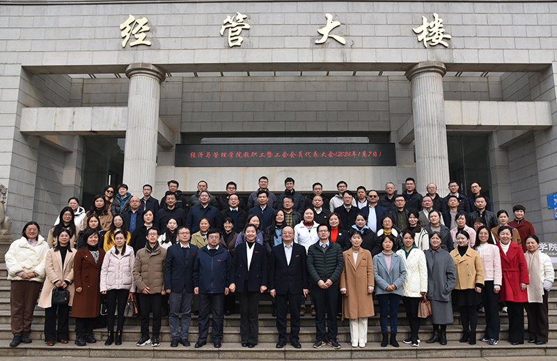 2024年1月7日上午9:30, 经济与管理学院在经管大楼100报告厅召开教职工暨工会会员代表大会,学院教职工代表参加了会议。会议由院党委副书记唐青主持。