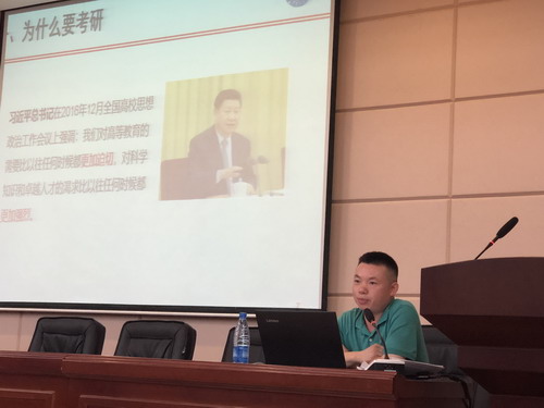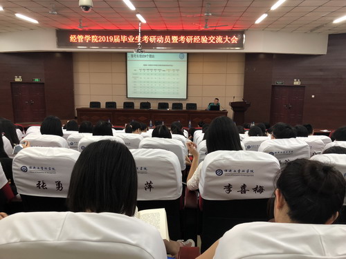 5月16日晚上,经管学院在文科楼A200举行2019届毕业生考研动员暨经验交流大会。校研究生院副院长龚文斌、院党委副书记涂道勇、副院长彭新宇、王治出席了大会,2018届考取研究生的学生代表及2019届考研意向学生参加了会议。大会由2015级辅导员张翼主持。