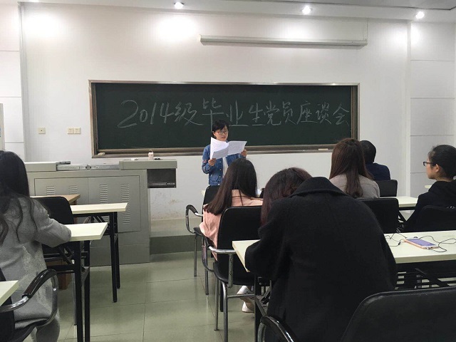 2018年3月29日上午10点,经管学院在金盆岭校区7-117举行14级毕业生党员座谈会。会议由经管学院14级第二学生党支部书记庄奕主持,党委副书记涂道勇、就业专干计潇出席了此次会议。