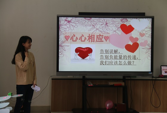 活动由朋辈心理部干事张森亭主持,旨在引导同学们识别并学会正确面对自身和周围的负能量,在紧张的学习与生活中达到减压的目的,促进身心健康发展。此次活动设置了五个部分,活动的第一项是“嘘,这就是秘密”,每位参加人员在纸上写下最近让自己感受很负能量的事情,折好后放在事先准备好的手机袋里。在在接下来的活动中,主持人将所有参与分为四个小组,以小组为单位,完成活动。在“不定点爆破”环节里,小组成员一起合作在单位时间里完成吹气球,不用手脚挤爆气球,挤爆气球数量最多的小组获胜。在“心心相应”环节,一个同学比划一个同学猜题并以接龙方式在小组中传递信息,最后猜出与答案最为接近且用时最少的小组获胜。在“出谋划策”环节,主持人在所有分组中选取三组进行。每组成员根据工作人员给出的一个情景(网络上的情景剧),进行分析,找到解决问题的具体方法,并由小组成员进行情景再现。在最后的“我来帮你”环节,每个人在第一个环节准备的手机袋里随机拿一张纸条,阅读纸条,并在纸条上写下对他的暖心回复并提出恰当的解决办法;并由参与者自愿分享自己拿到的纸条的内容以及自己的想法,相互交流。