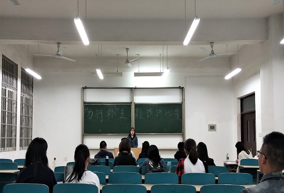 4月15日1900,经济与管理学院在文科楼E101102举办“力行杯”演讲比赛。本次比赛由朝闻道协会导师张文梁、经管学院学习部部长冯泓元、副部长罗科威、16分会部长李舒婷以及十月诗会一等奖获得者梁泽武担任评委,经管学院部分学生参与了本次比赛。