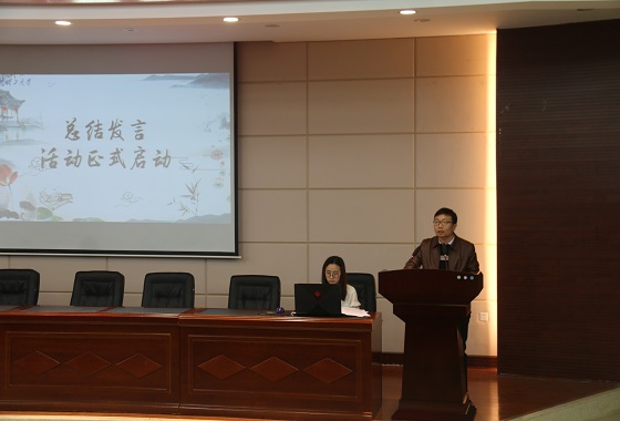 开幕式上,首先由经管学院艺术团表演了情景剧:战争与和平,演员们激情饱满的表演带领观众们走进了剧情,并阐明:我们不是生在一个和平的年代,而是生在一个和平的国家,同时指出国家的强大是千千万万人民奋斗而来的,未来的时代属于新一代的青年,当代大学生应多读书,寻求全面发展。继而,主持人简要开场并介绍了到场嘉宾。随后,由辅导员张翼宣读了“新时代、新使命、新作为”主题教育活动的相关方案,其中包括活动主题、时间、工作内容以及要求。紧接着,辅导员陈钰汀就“百册经典•悦读经管”读书交流活动进行了简要介绍,并表明活动分为读、听、写、诵、享、聚六个方面,致力于从各个方面培养学生的综合素质。随后,两位学生代表在朗读者环节与大家进行了分享,来自会计1507班的何京,以“我站立的地方是中国”为题,表达了对祖国的热爱与感恩,同时也表达了身为中国人的自豪感;来自金融1702班的康佳妮,分享了自己参加北大模联后的感触,她表示从中国获得了一份容易被忽略但却真实存在的安全感,这份安全感是国家给予人民最好的礼物。最后,由涂道勇书记总结发言,他指出当代大学生要有意识且有觉悟地去读书,培养自己的人文素养,在待人接物、人际交往、为人处世等方面都要培养自己的能力,要对未来有合理的规划。并强调了幸福都是奋斗出来的,做新时代的奋斗者,需要热情,更需要用心。