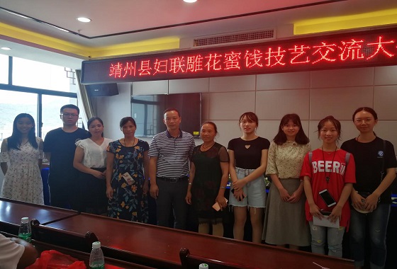 上午,小组成员参加了靖州县妇联雕花蜜饯技艺交流大会,我们先后与雕花蜜饯大会周会长、吴辉老师和在大会中脱颖而出并且极具创新能力的唐艳姐进行了交流。