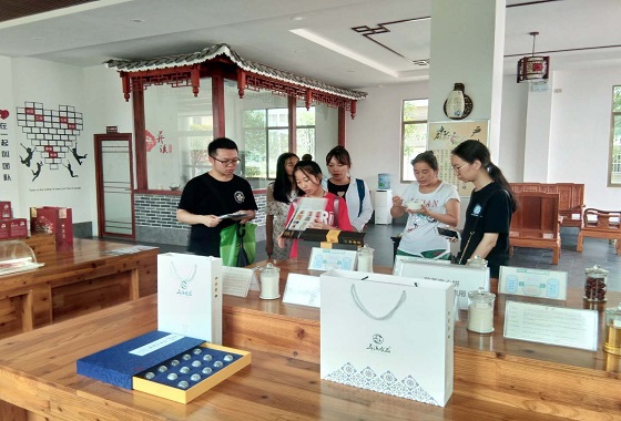 接着,小组成员前往了靖州异溪茯苓食品有限责任公司。团队先后了解其企业文化、品牌文化、企业发展历程、现有的产品和它们的产品包装,同时参观其生产车间,同时,公司向团队介绍了产品生产流程,这对雕花蜜饯团队后期的发展有一定的借鉴意义