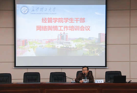 4月11日晚,经管学院学生干部网络舆情培训会议于云塘校区文科楼A200顺利召开,会议由院党委副书记涂道勇主持,院团委书记何涛、院团委学生会部分学生干部以及各班班长、团支书参加。