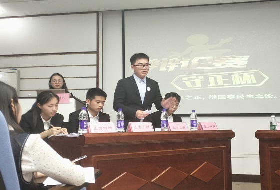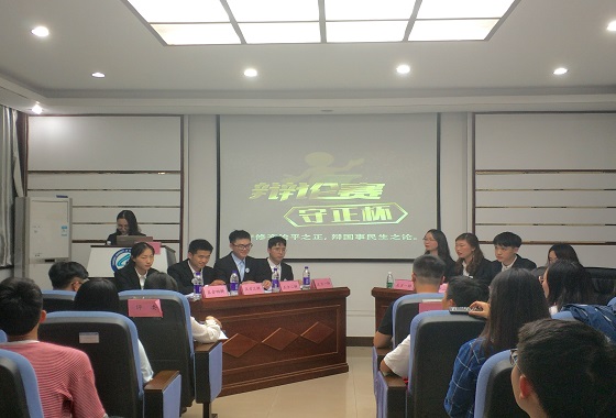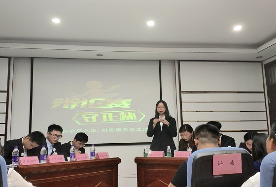 4月23日晚,长沙理工大学第十一届“守正杯”辩论赛复赛八进四于云塘校区文科楼E501顺利举行。敬佩、罗寒、徐鼎杰、邓奕琳、代佳欣担任本次辩论赛评委。