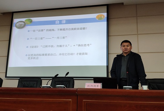 主讲人欧阳剑军就“感悟”这一主题,与大家分享一些找工作的经验。在讲授中,欧阳建军通过分享自己的一些小经验和一些小故事来指导大家如何对自己的职业发展做出规划,又如何提升自己的能力以辅助自己实现目标,他指出,在工作中常常不可避免的两“qian”——前途及金钱上,他也告诫各位同学摆正心态。在职场中更要常怀感恩的心态,友善对待周遭的同事,以自律的要求和舍得的心态,在未来的职场中一争高下。苏军着重给同学们提出了一些建议,他提出在财务工作中最重要的是学习能力,相比书本上获得的知识,更重要的是实践与应用能力,每一位同学更要明确自己的定位,抓住自己的爱好,不能盲目随波逐流,同学们更要多接触与本专业的相关的知识,跟随信息与时代发展的速度,更新自己的知识面。