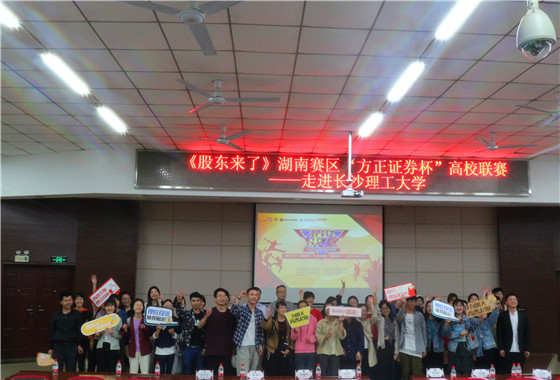 为扩大《股东来了》竞赛影响力,选拔优秀知识型人才,5月21日晚,经管学院于云塘校区文科楼A200举行《股东来了》湖南赛区“方正证券杯”高校联赛宣讲会。出席本次宣讲会的嘉宾有湖南证券业协会常务副会长兼秘书长刘丹岳,湖南证监局法制处毛梦远、李明,方正证券投资者教育基负责人彭清芳,经管学院党委副书记涂道勇,创新创业与资产管理办公室主任刘洪深,金融系副主任李兆琼,宣讲会由方正证券孙骞主持。