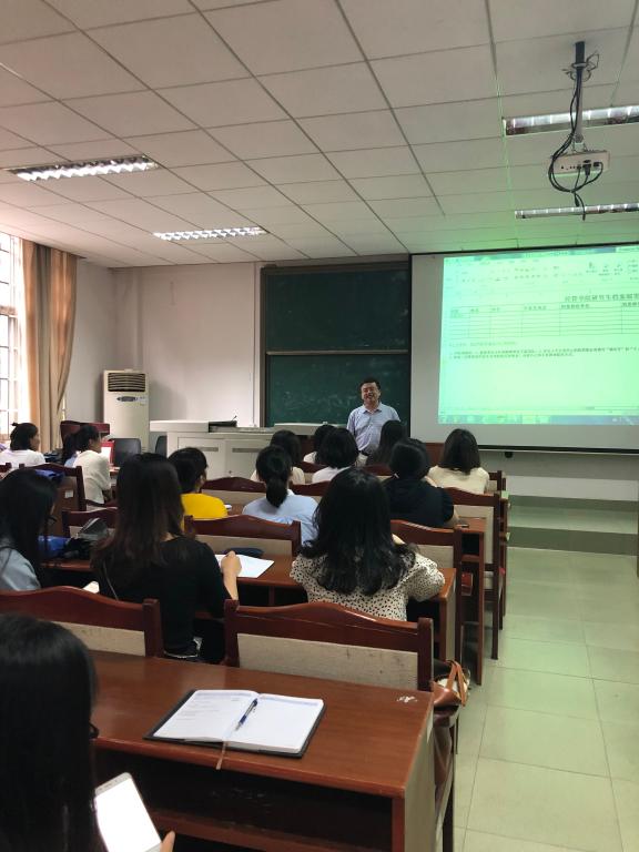 2019年5月29日上午,经管学院在金盆岭校区七教110举行了2019届研究生学硕毕业生大会,经管学院副院长王治,就业辅导员计潇及2019届经管学院全体学硕研究生参加了此次会议,会议由辅导员庄奕主持。