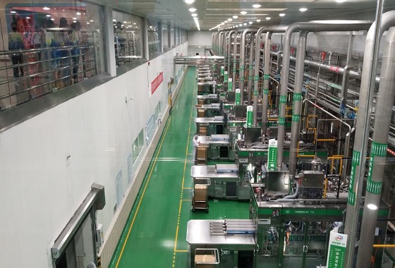 牛奶经过无菌罐加工、包装、装箱、存库、出库等工序后,才流入市场,变成我们常见的奶制品。在专业人员的指导下,调研团看到了庞大、复杂的生产