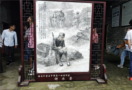 谢冰莹是中国近代史上第一个女兵,也是中国历史上第一个女兵作家,因此谢冰莹故居也被列为省级文物保护单位。从油溪桥村来到谢冰莹故居,两个地方的不同的地理环境和人文气息形成了鲜明对比。油溪桥村是一个村庄规划很完善的景区,道路与建筑都井井有条。而谢冰莹故居更多的是对现有文化遗产的维持,不需要刻意的规划,一切都是那么古朴自然,让人能够很直观的领会到“小桥流水人家”的意境。通过与主管文物保护的谢主任交谈,团队得知,谢冰莹故居由于没有一个明确的管理部门,现在已经开始慢慢没落了。同时谢冰莹故居存在的产权不清晰等问题,对故居保护也是一个巨大的阻碍。