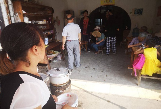 上午,团队成员在明珠村村部的门口集合,搭乘班车前往许家坊乡进行调研。团队首先来到一家早餐店,通过与早餐店老板的闲聊,团队了解到:早餐店的老板来自明珠村,因为家里有老人和孩子需要照顾,所以在乡里开个小店,赚点钱,平日经营餐馆并不使用普通话。离开早餐店后,团队继续探访了几家当地的超市和小店,情况都大致相同。因为很多老人不会说普通话,所以店家卖东西都是用方言。土家族的人们热情好客,在与他们交谈之间,团队收获颇多。