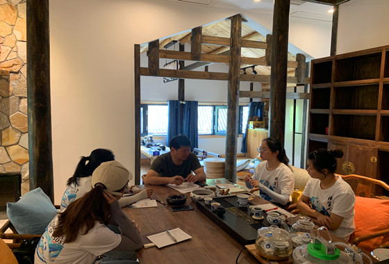 上午,团队与靖州县青龙界生态庄园肖经理展开了交流会。会议伊始,肖经理向团队成员介绍了靖州禾花鱼的养殖方式和系列产品制作的基本情况。他说道,禾花鱼作为当地的一道特色菜,佐料和鱼的新鲜度是决定禾花鱼口味的重要因素。从小鱼苗的养殖到禾花鱼做成菜端上餐桌,食材流通和市场营销问题是关键。此外,腌制禾花鱼也是靖州的一道特色。随后,团队成员与肖经理积极地交流,了解当地合作社及禾花鱼农户的情况,并适时调整调研内容,准备下一步的调研行程。
