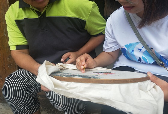 今年是周元桃坚持插绣的第十年,从一开始只能在旧布上练手,作品粗糙,到如今作品精美逼真,立体生动,技巧精湛,周元陶始终坚持苗家插绣,并致力于将其传承下去。周元桃利用暑假期间免费教前来支教的大学生插绣的技巧与方法,并积极参加教习插绣的活动,帮助更多人来学习苗家插绣,让插绣技艺可以更好地传承。这种匠人精神也不禁让调研团成员为之动容。