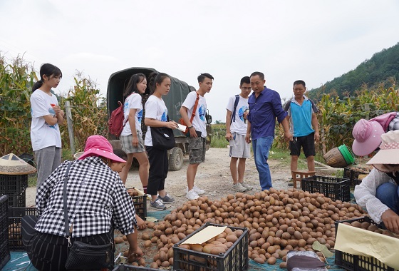 在与宏鑫猕猴桃专业合作社理事长罗远爱的交流中,队员得知,较高海拔、气候湿润的自然环境优势造就了当地猕猴桃的大量种植,如今猕猴桃产业规模现已突破20000亩。为打造好钱袋子工程,合作社采取“合作社+农户+基地+销售”的运作模式及“六统一”的管理方式,贴近政策促进贫困户就业,深度挖掘,提升技术水平,实现标准化生产。长期的增产增收使农民得到了切实的利益。合作社最初探索天津市场产业发展道路时不幸亏损,甚至有股东退出,但罗远爱总结经验,实时改进,凭借不服输的精神把握市场需求、不断推广产品,目前已成功在天津、江苏、山东等多地建立档口,得到国内外市场的广泛认可。他多次强调道:“品质第一,诚信为本”,坚持原生态种植,晒掉落地的猕猴桃坚决不用。