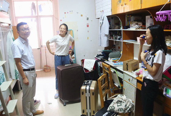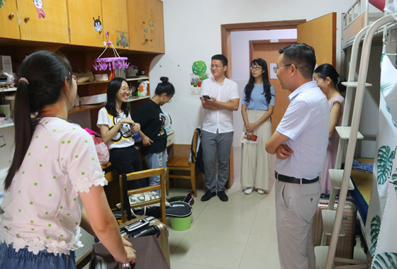 为了解学生返校情况,加强宿舍管理,同时提高学生的安全意识,督促同学们新学期养成良好的学习生活习惯,9月1日下午,经管学院党委副书记涂道勇带领学工办全体辅导员老师走进学生宿舍,了解学生们生活学习情况。