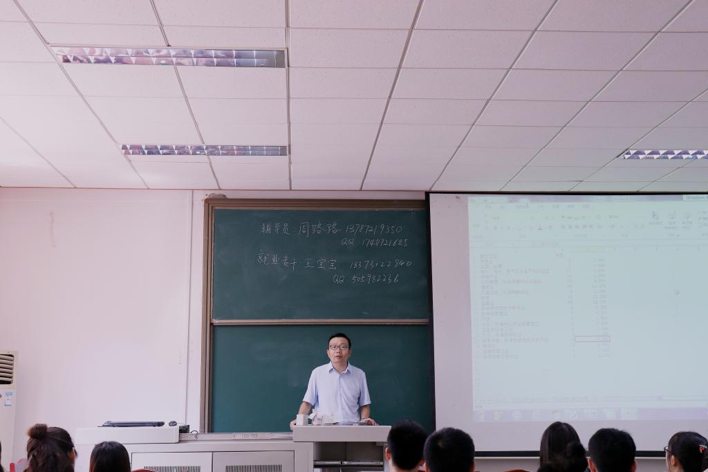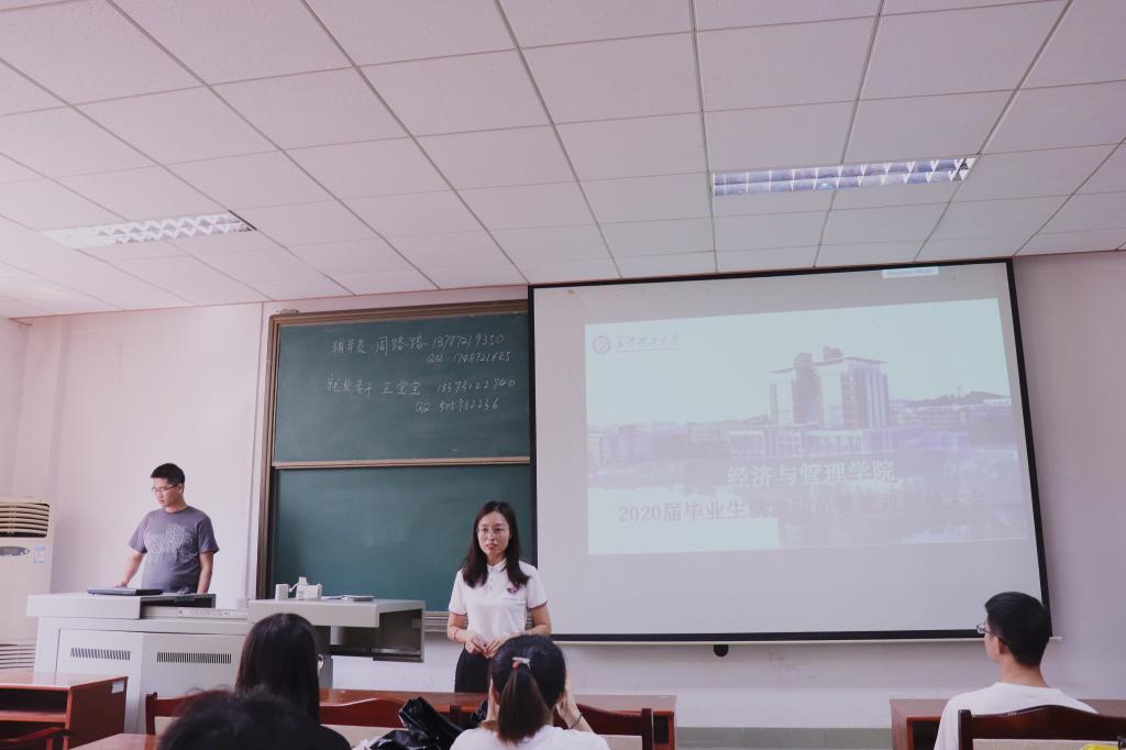 2019年9月6日上午10点,经管学院在金盆岭校区7教110教室举行了“2020届研究生毕业生就业动员大会暨就业指导大会”的主题讲座,本次会议由研究生辅导员周路路老师主持,院党委副书记涂道勇、就业专干作就业动员,全体2020届毕业生分两个批次参会。