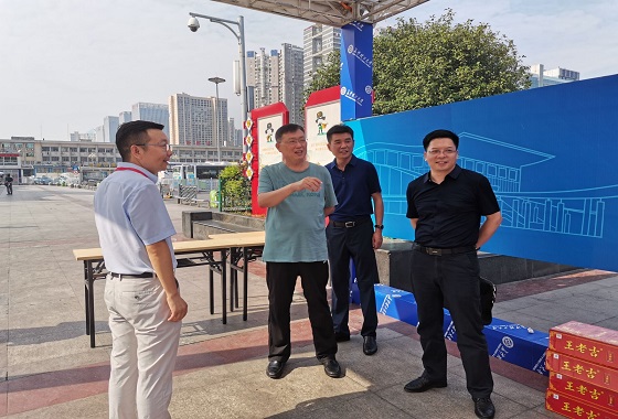 9月8日上午,副校长谈传生、学工部部长艾楚君、副部长霍向阳、经管学院党委书记王宏、副书记涂道勇一行来到学校设在长沙火车站的迎新接待点视察并指导迎新工作,看望慰问在迎新一线辛苦工作的经管学院迎新志愿者。